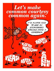 My daily 40-mile-commute-each-way has been a true test in holding back road rage and exuding courtesy. I make a point to wave at least twice to the person who lets me in front of them…simply to be sure that they see that I’m grateful to them for their courteousness.